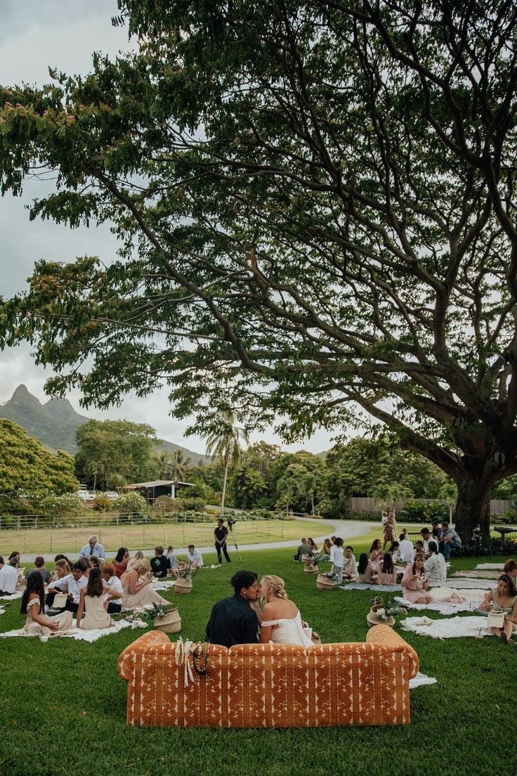 Te regalo un consejo práctico. Crea varios puntos de encuentro donde los invitados puedan descansar y charlar donde haya mantas, pequeñas estufas, sombrillas o incluso bancos estratégicamente ubicados que permitan que la boda respire y se sienta como un encuentro real y no únicamente como un espectáculo.